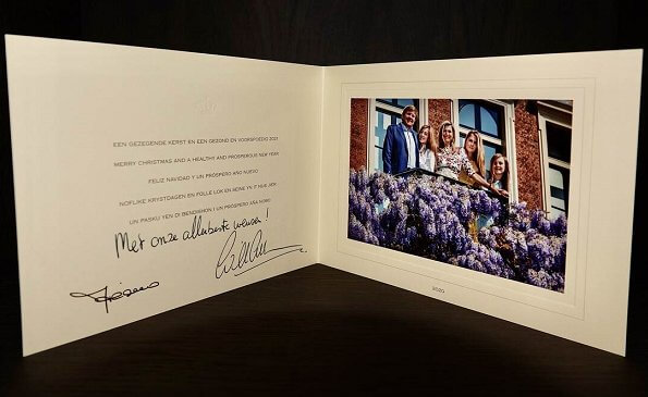 On December 24, 2020, King Willem-Alexander and Queen Maxima released their Christmas 2020 card. The photo on the card shows the King and Queen with their three daughters on the balcony of Huis ten Bosch Palace. The message on the card is “Merry Christmas and a healthy and prosperous new year”. The photo was taken on April 27, 2020 by Patrick van Katwijk.